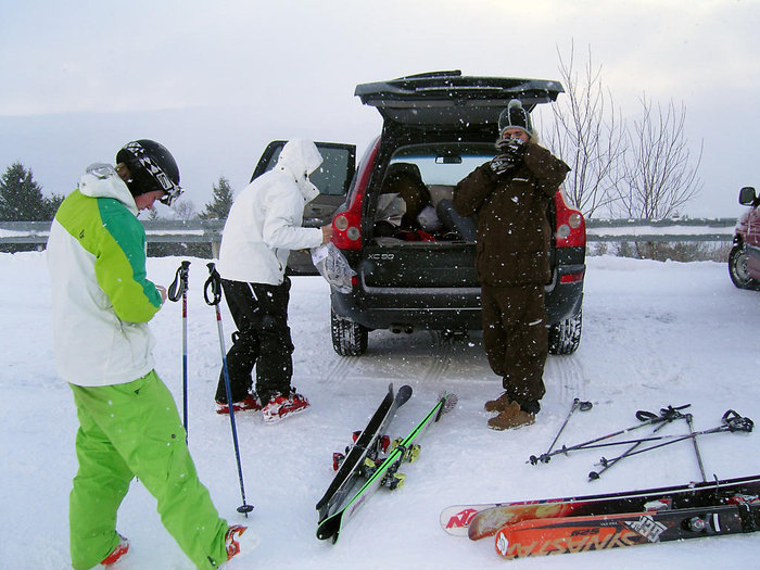 I samma stund som bilmotorn stängs av vänder sig alla mot varandra och väntar på att någon annan ska ge kommando. Som i trans flyger dörrarna upp och innan vi vet om det står vi där igen, sex månader sedan sist, fyra unga pojkar med pjäxorna på fötterna och skidorna i handen gåendes mot liften.