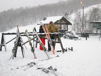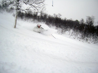 Varje åk följer samma mönster. På vägen upp i liften babblas det om vart det skall åkas, och när vi kommer upp till toppen enas vi om ett av alla ställen som är åkbara. Innan den som talar hunnit avsluta sista meningen och en annan knäppt sina pjäxor, för att vårda sina försäsongsfötter, har de två andra redan dragit på jakt efter mer snö. Tjohoo, woooohooo, whaaaa. Ljuden ekar mellan björkarna och det är inga rop på hjälp. Det som hörs är ljudet av glädje, ren och skär glädje. Här hörs ingen ångest för skolk, missat arbete, tenta eller åsidosatt flickvän. Allt sånt trivialt är bortkopplat, vi vill bara vara här, njuta av stunden. Om denna känsla bara varar för en kort sekund, så fångas den inte bättre en ett enkelt tjooooooo, följt av en ny sväng och nya virvlar av snö bakom skidändarna.