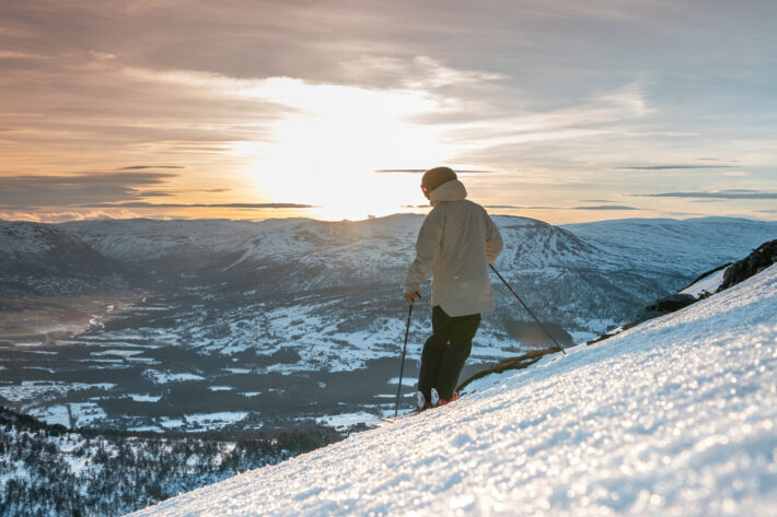 Här finns allt från öppna bowls och fjällryggar till branta rännor och skogsåkning med fluffig kallsnö långt in på vårvintern. De mest inbitna skidåkarna väljer att sätta på stighudar för kortare turer bortom liftarna, men de flesta linjerna kan faktiskt nås direkt från systemet – perfekt för den som vill ha stora åk utan att behöva gå långt.