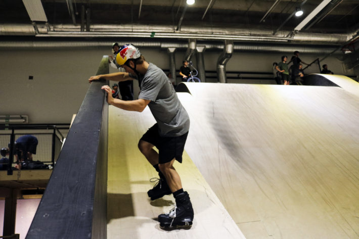 För en tid sedan var freestyle-skidåkning en subkultur till övrig alpin skidåkning med en skön ”hangloose”-vibe. Men i takt med sportens kommersiella framfart så har den också tappat lite av sin rockstjärnestatus och blivit strikt och inrutad, som de flesta idrotter. Med det skrivet så känns det faktiskt skönt att Oscar ramlar in på anläggningen med Red Bull-mössan på sniskan drygt en timme efter uttalad tid… det är tydligen inte så noga ändå vilket faktiskt känns glädjande.