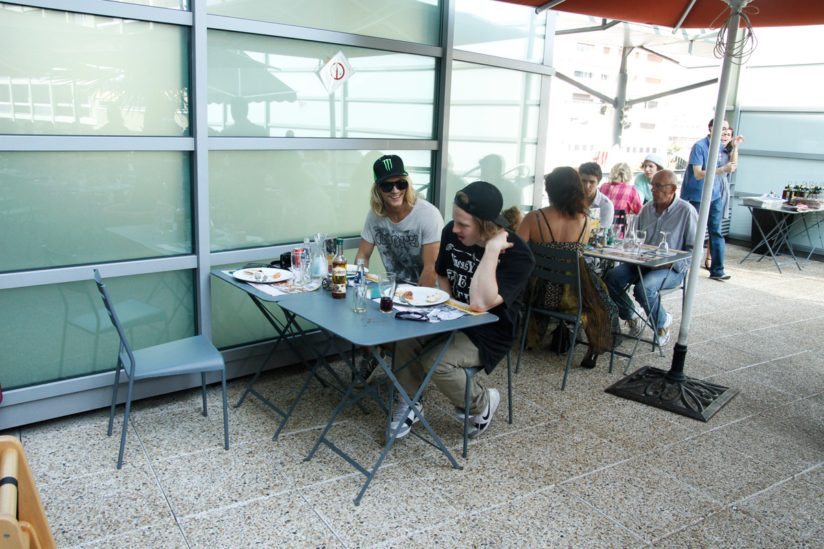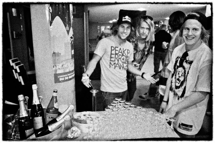 På lördagseftermiddagen visade Nimbus, Poor Boyz, Legs Of Steel sina filmer och i väntan på Chaoz och Field Productions sena visningar hamnade en drös svenskar (undertecknad, Jacob Wester, Henrik Windstedt, Niklas Eriksson och Christoffer Sjöström) på någon vänster på en privat tillställning där det bjöds på vårrullar och champagne.