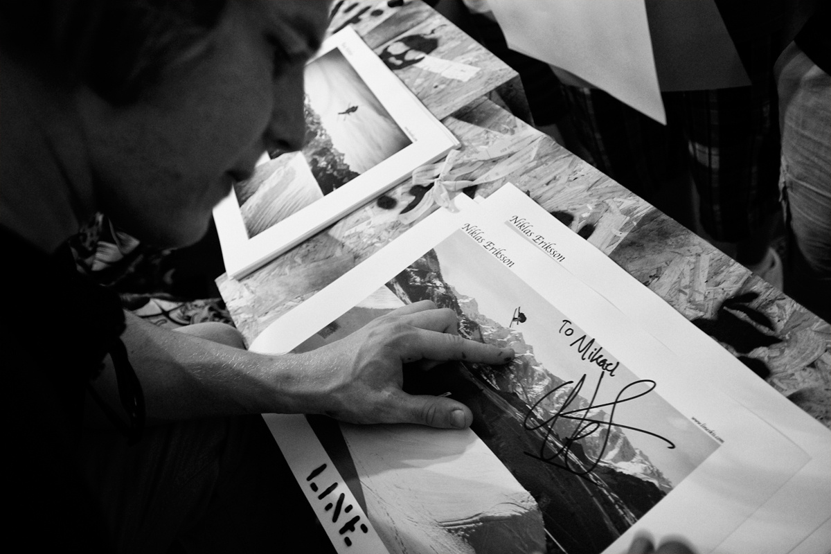 Niklas Eriksson skriver autografer hos Line