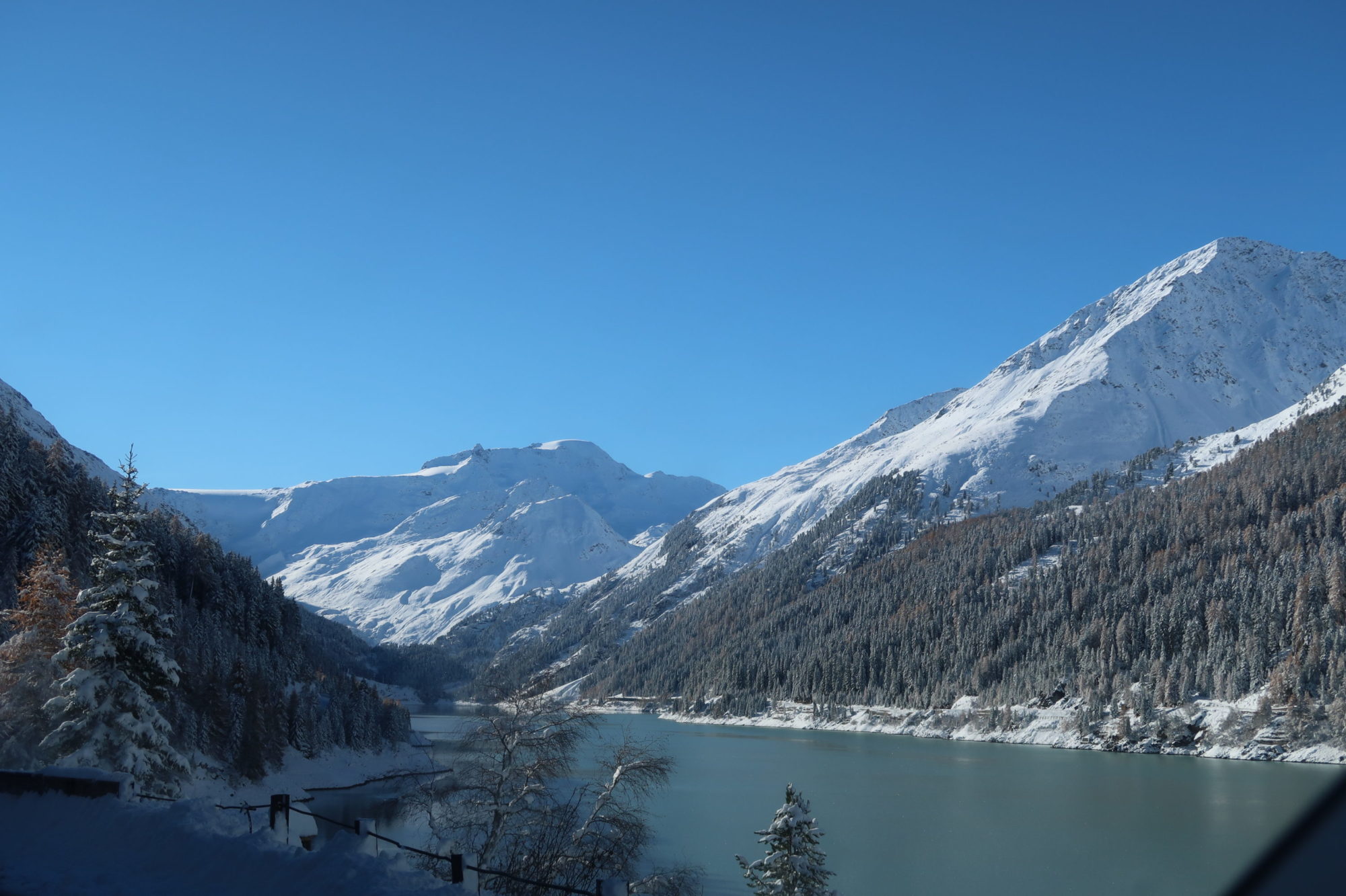 Väl uppe på nästan 1.800 möh ser vi den långa Gepatsch Stausee, som är Österrikes näst största reservoir/kraftverksdamm. Den fylls på av Österrikes största glaciär som heter Gepatschferner. Vi fortsätter längs sjön och får där dalen slutar syn på ett högt, brett och alldeles vitt berg – det är det 3.518 meter höga Weisssepitze, som vakar över skidområdet Kaunertaler Gletscher.