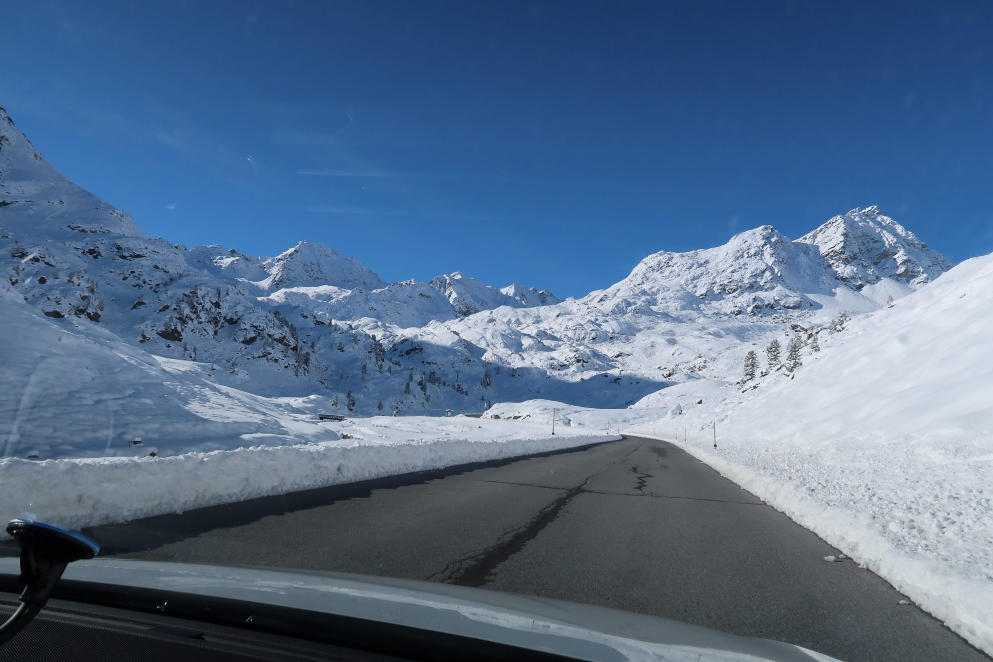 Efter några dagar börjar vi ju fundera på när vi ska åka till Kaunertaler Gletscher, det vill vi ju inte missa när vi ändå är i närheten. Vi bestämmer oss för att det får bli sista skiddagen då Bergfex återigen har lovat ”Kaiserwetter”. Fågelvägen är det bara 14 km mellan Pitztal och Kaunertaler Gletscher, men för att komma dit måste man först köra ut ur Pitztal och sedan in i Kaunertal. Även om vi hittar en slingrande genväg över passet ”Pillerhöhe” är blir det ändå en körsträcka på 82 km som tar nästan två timmar.