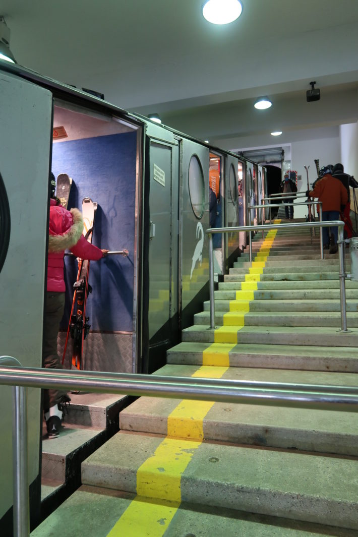 Snabbt är vi på plats vid Gletscher Express, tunnelbanan som på åtta minuter skickar upp oss 1.100 fallhöjdsmeter genom berget, och släpper ut oss vid toppstationen på 2.840 möh. Snabbt och effektivt.