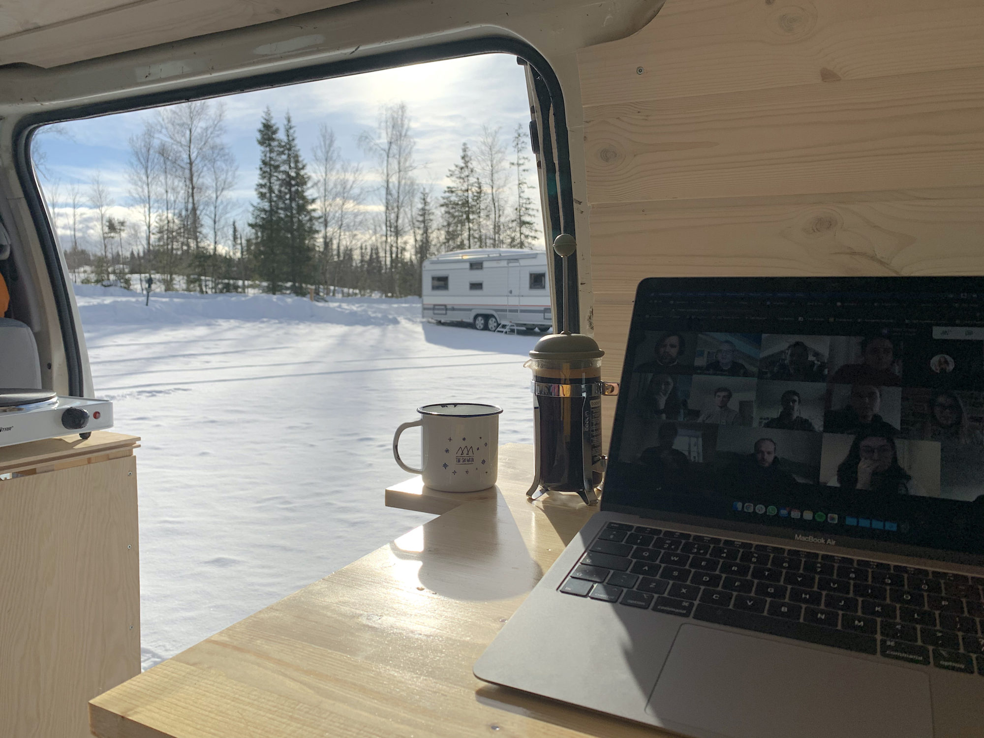 – Sagt och gjort. Jag hade redan beställt en dieselvärmare att installera i vanen och så fort det var gjort så packade jag bilen, fyllde takboxen med skidor och styrde norrut.