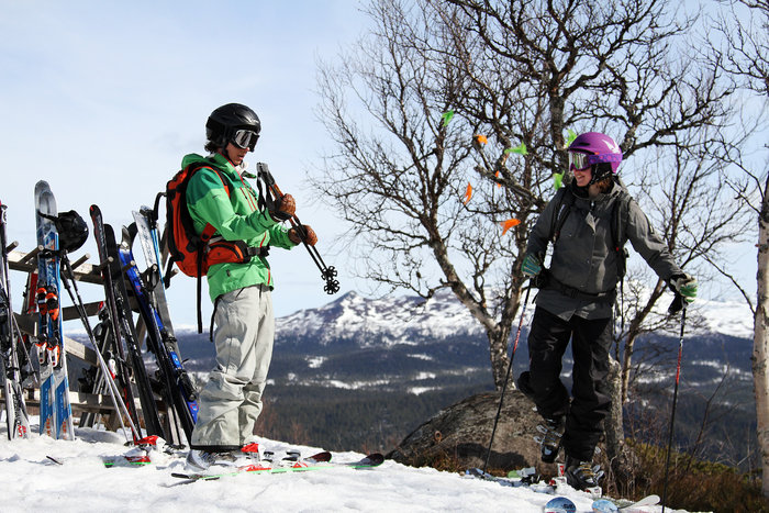 Efter att ha funnits oss till rätta i den nybyggda Skilodge, vid foten av Funäsdalsberget, gav vi oss ut för att spana in läget och kolla med locals om vad man kunde göra. Vi träffade Fredrik Norberg och Hasse ”Mute” Lindborg på Sportmaffian och de skakade på huvudet om våra planer att ta oss ut till Helags. Men de hjälpte ändå oss med de stighudarna vi saknade och goda råd. På fredagen fick vi dock slutdomen från vår ”guide” Rickard Fenberg, det går inte att köra ut till Helags. Så vi tog våra fetingar och traskade vemodigt till liften…