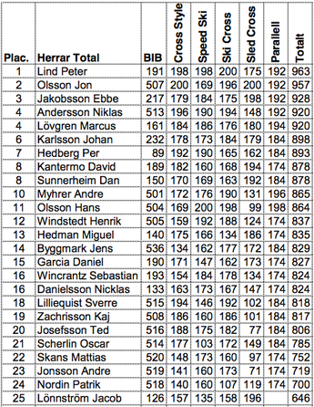 Efter Peter Lind kom Jon Olsson, som slutade på en total andraplats med ett gäng andra namnkunniga skidåkare bakom sig.