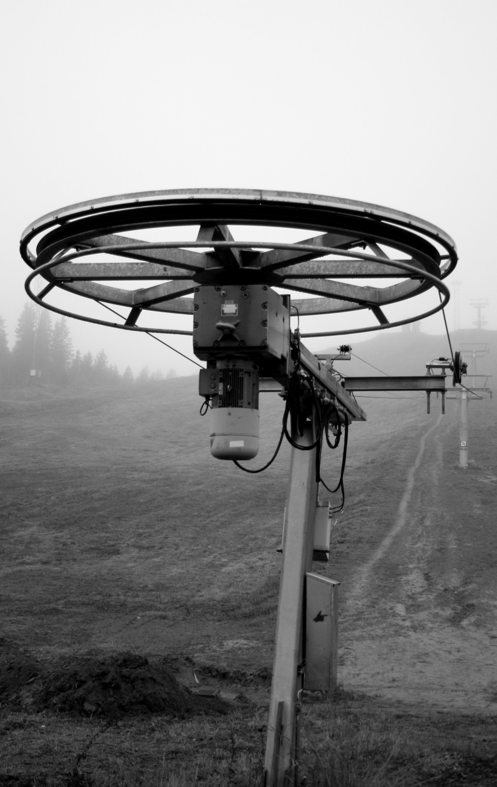 Tog en promenad till skidbacken i dimman, snöbristen var total dock!