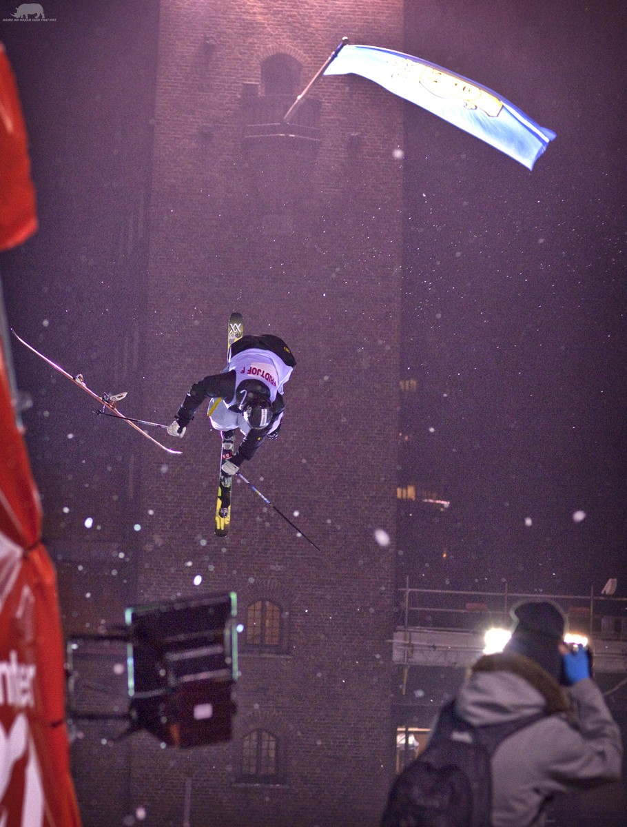 Fridtjof Fredricsson någon sekund efter att han tweakat sin pjäxa ur bindningen i sin double cork 1080.
