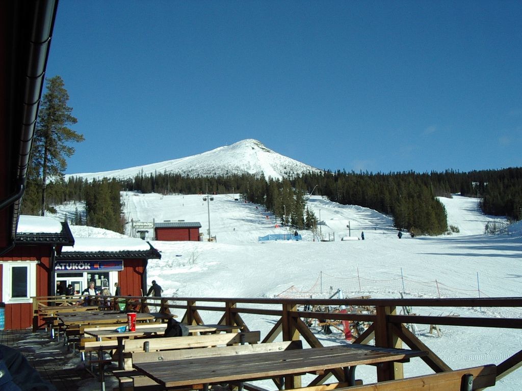 En bild tagen från caféets uteservering, upp mot toppen