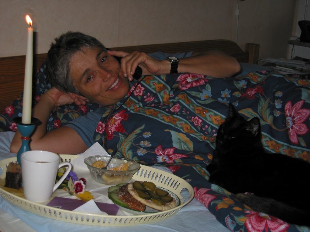 Mamma fyller år och Shadrack uppvaktar med ficka på sängen.
