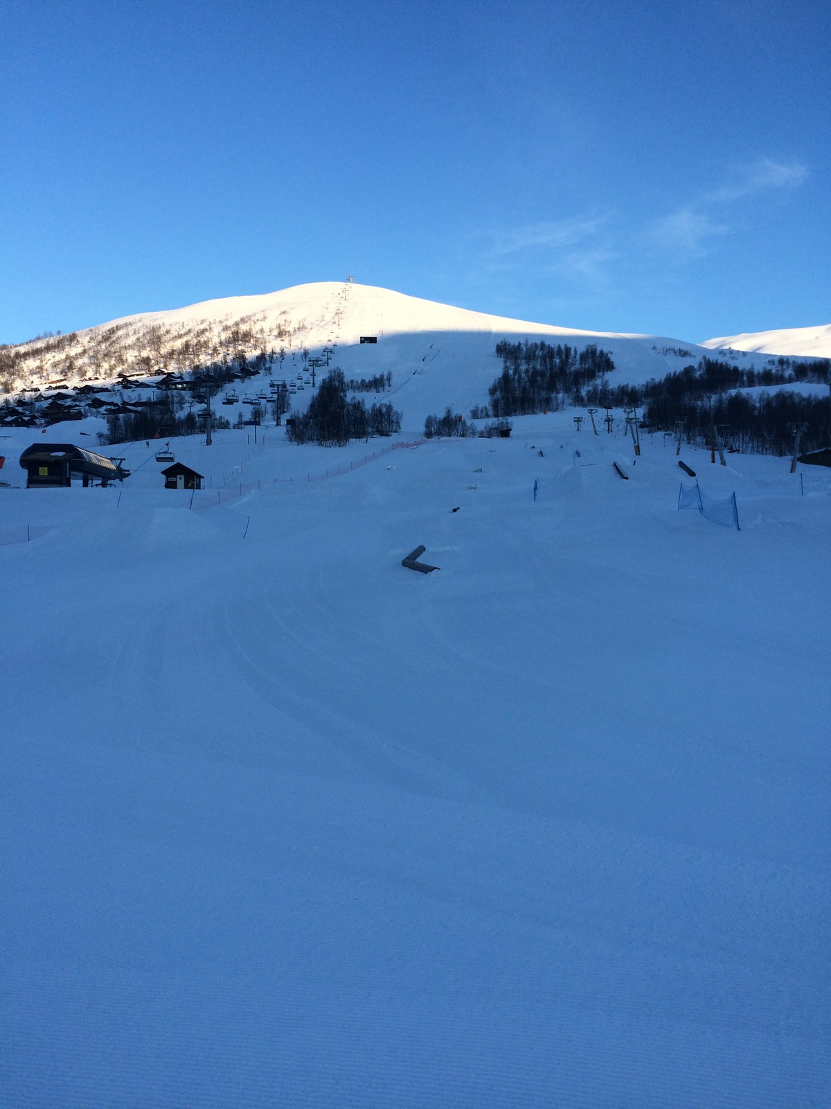 Onsdag ny flott dag med høg solfaktor. -6 vindstille og sol oppe. -3 nede. Alt åpent forutan Landsby og Helgatuntrekket 9.30-16.00. Parken er under ombygging og snart klar til Open Klasse. Hugs at man må ha parkpass for å delta i Open Klasse parken. Som bildet viser er det bygt element i barnebakken og. Skibussen går kl.10.00 med retur kl.15.40 og hugs studentrabatt. Ynskjer alle velkomne på ski i Myrkdalen og hugs solkrem.
