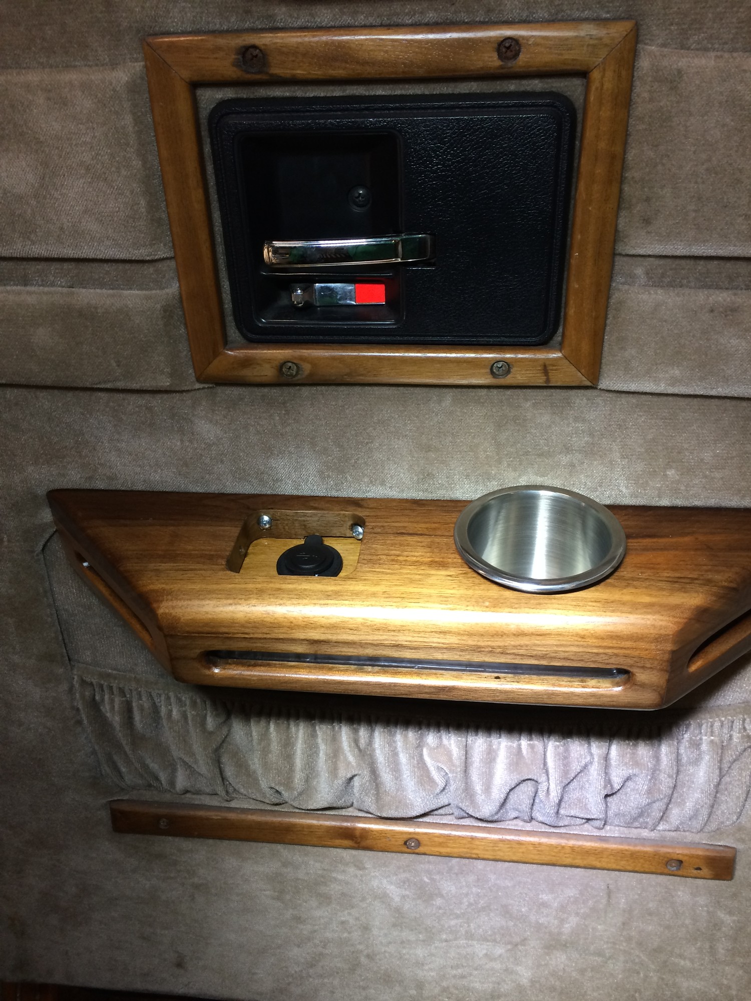 Nylackerad trä inredning med dubbel USB uttag vid varje fåtölj