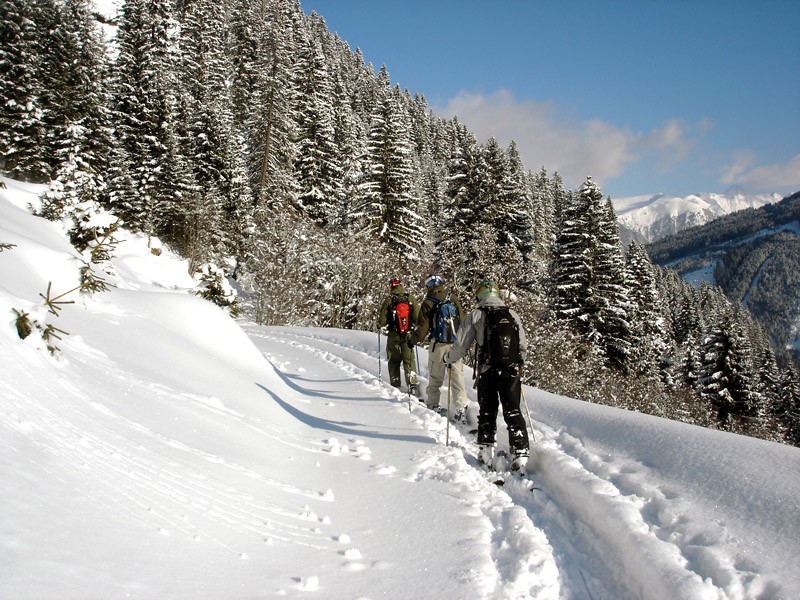 På väg tillbaka mot Angertal efter ett vansinnigt snorkelåk på Türchelwand. Lärde mig att valla under skidorna är att föredra, undersidorna på mina gotama pryddes av ett 5cm fastfruset is/snötäcke, bra drygt att inte ens kunna staka sig framåt :)
