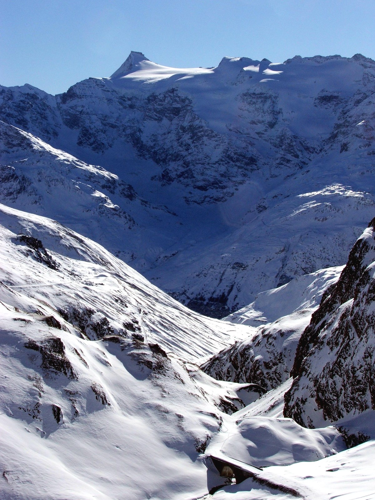 europas högsta vägbergpass, man ser vägbron nere i högra hörnet