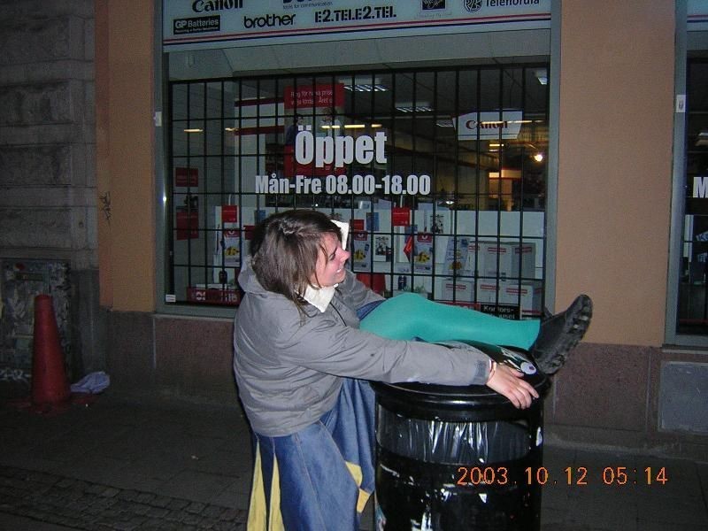 Bestiger soptunna utanför icke namngiven krog i Stockholm