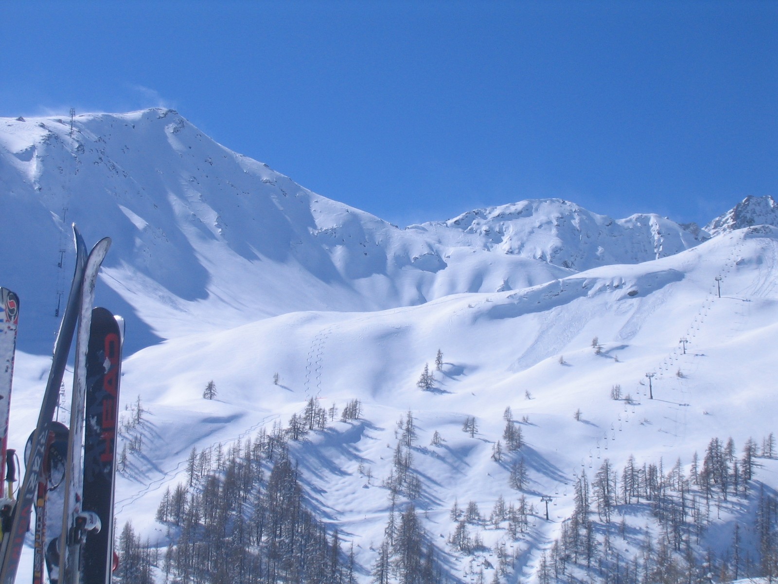 Två pistörers spår ner efter att ha röjt laviner vid Cibouit.