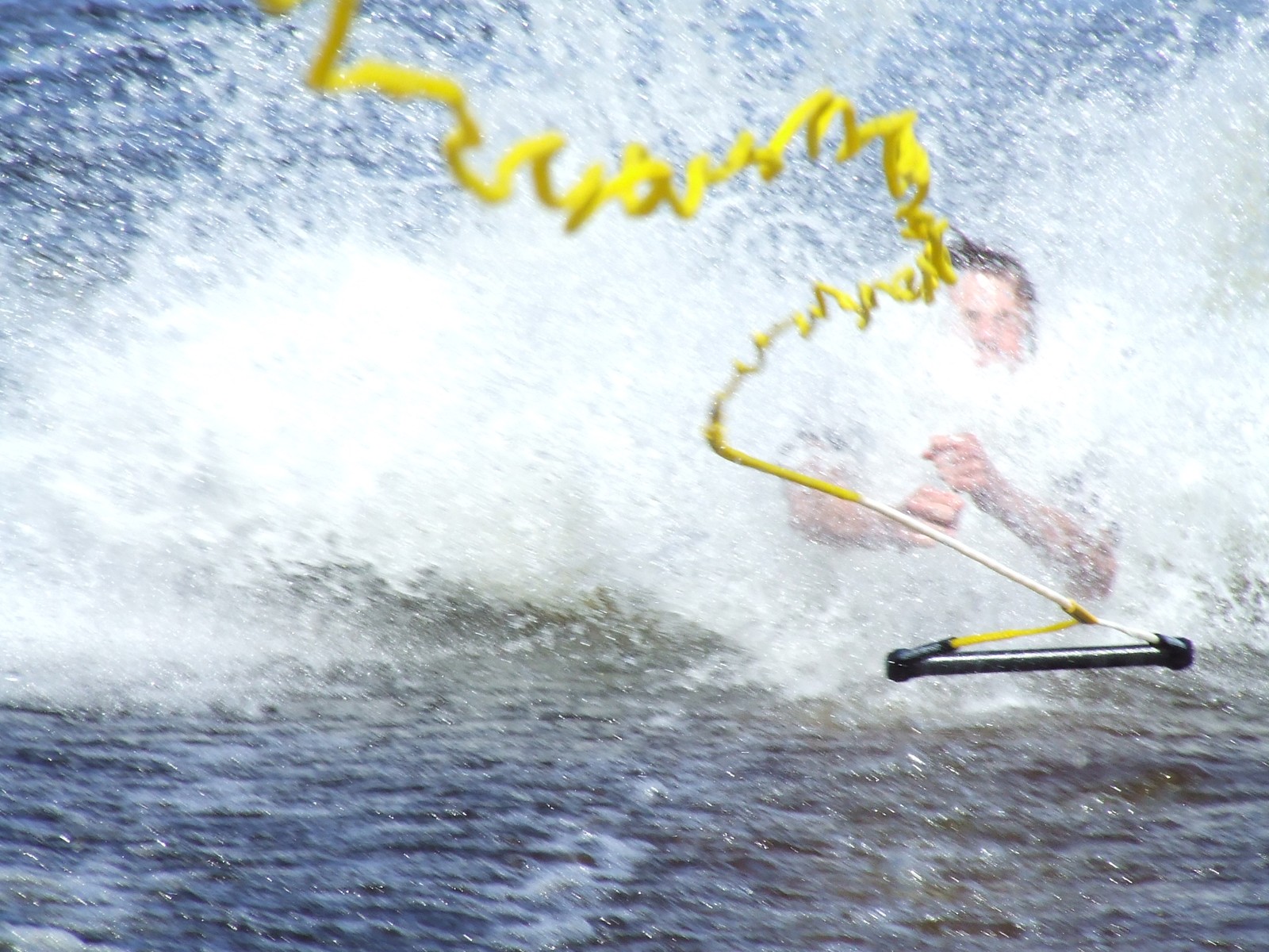 Simon åker kneeboard och sätter i framänden av brädan. Resultatet blir att han flyger framåt och jag lyckas fånga precis det ögonblicket när simon tappar repet efter att bromsats av vattnet!! haha Riktig Cool