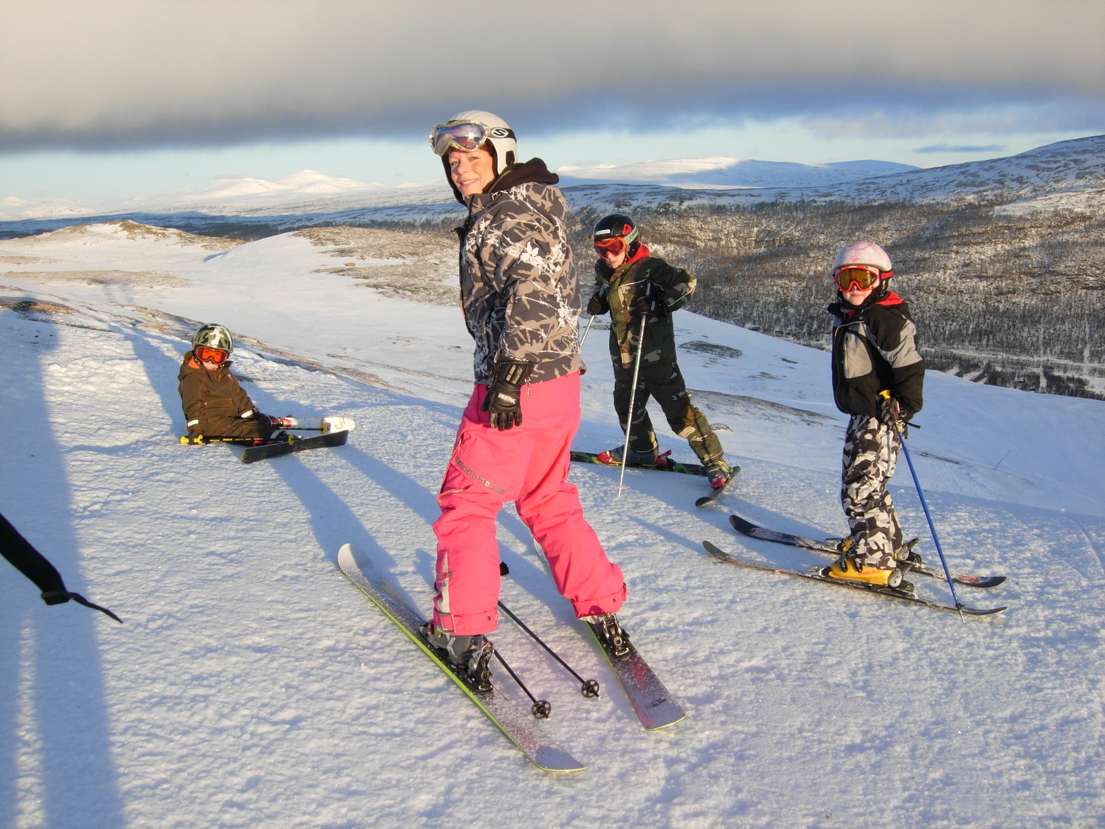 Äntligen toppen. Nu ska Pappa skynda sej att knäppa kort så att vi kan åka ner igen.