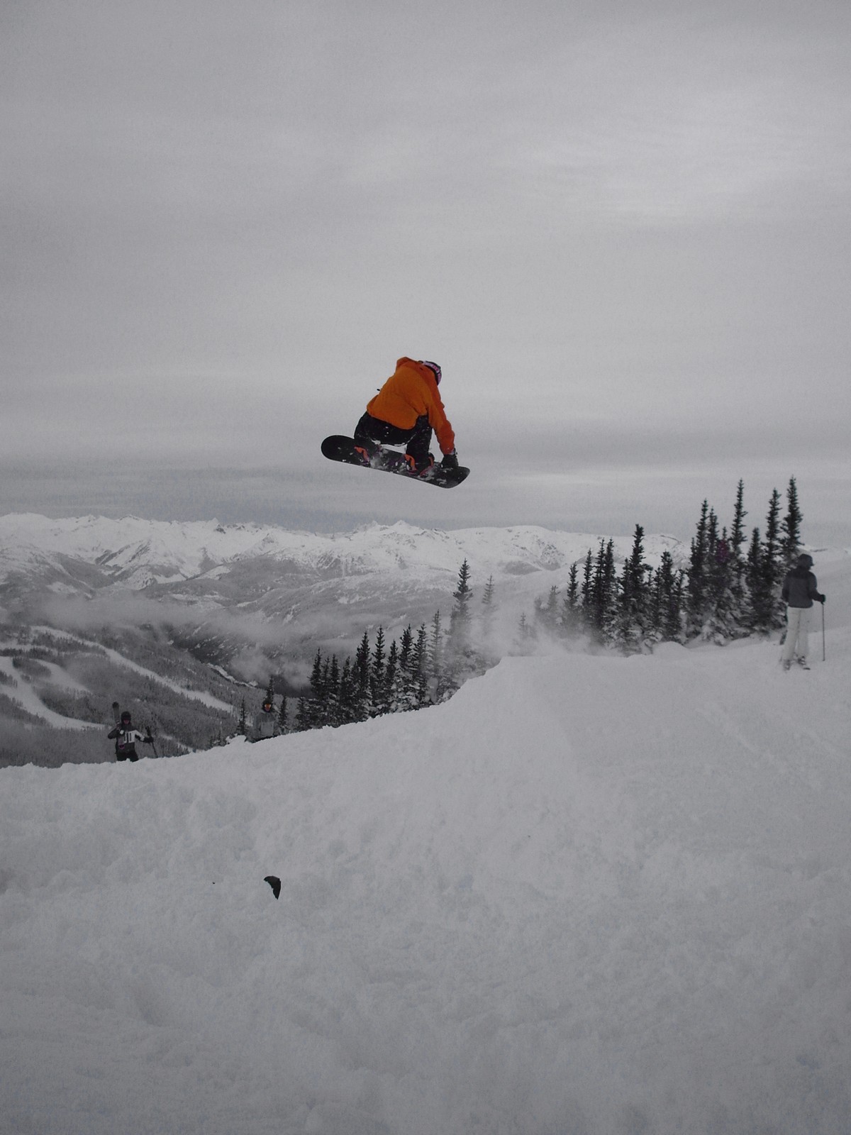 En go nosebone på ett backcountryhopp i 7th Heaven, Whistler