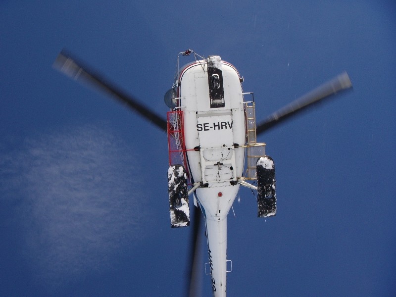 Helikoptern lyfter efter att ha släppt av oss för ett grymt åk på Borkafjäll.