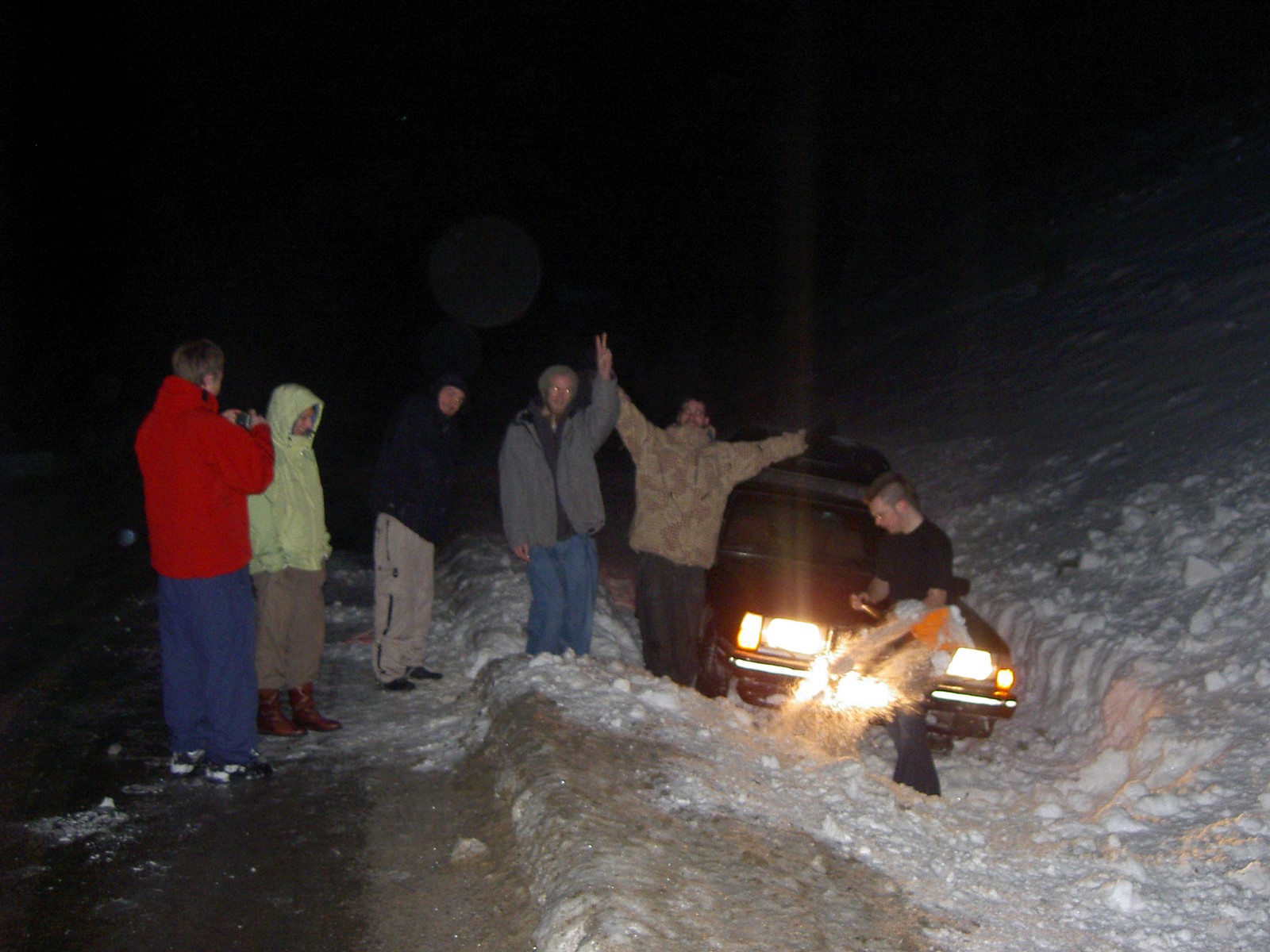 Så här glada blev vi när bilen skulle skottas upp efter en dikeskörning.