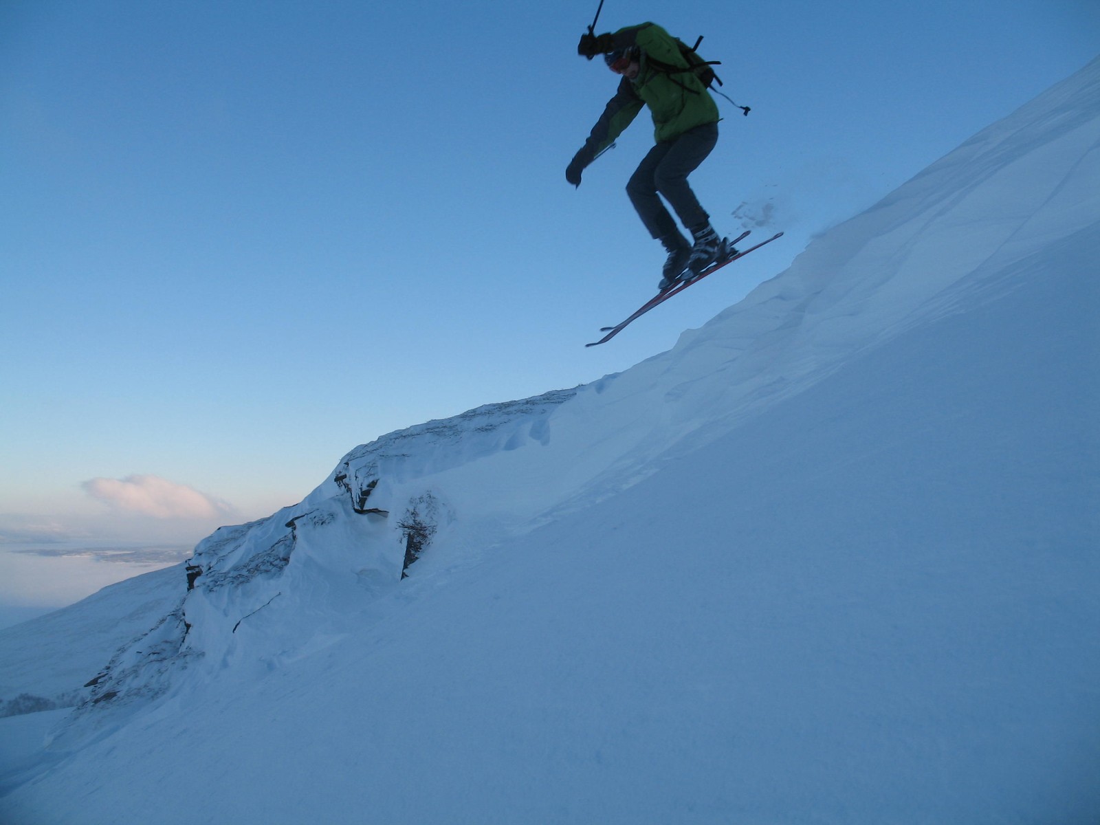 Björn lägger en offpistrepa strax ovanför toppstationen och får till ett hopp med aningen hård landning :P.