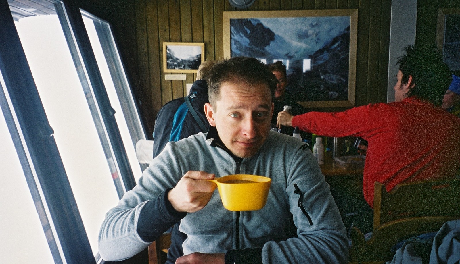 Värmande soppaus i toppliftstugan på Noulja, Abisko