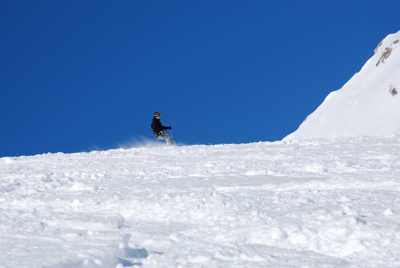 Skön offpist, härligt blå himmel.