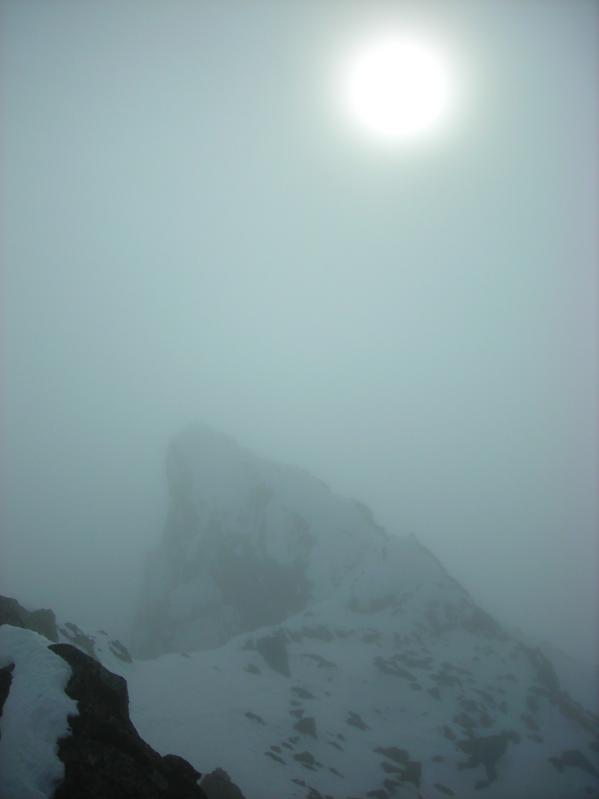 Midtre Dyrhaugstind visar sin profil genom molnen