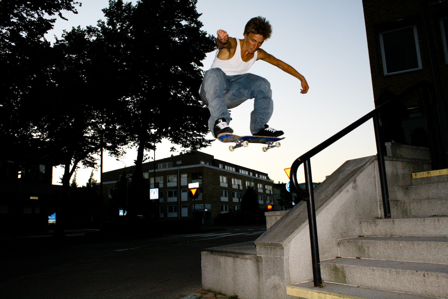 Vince drar en hög och clean ollie utanför Kommunhuset.