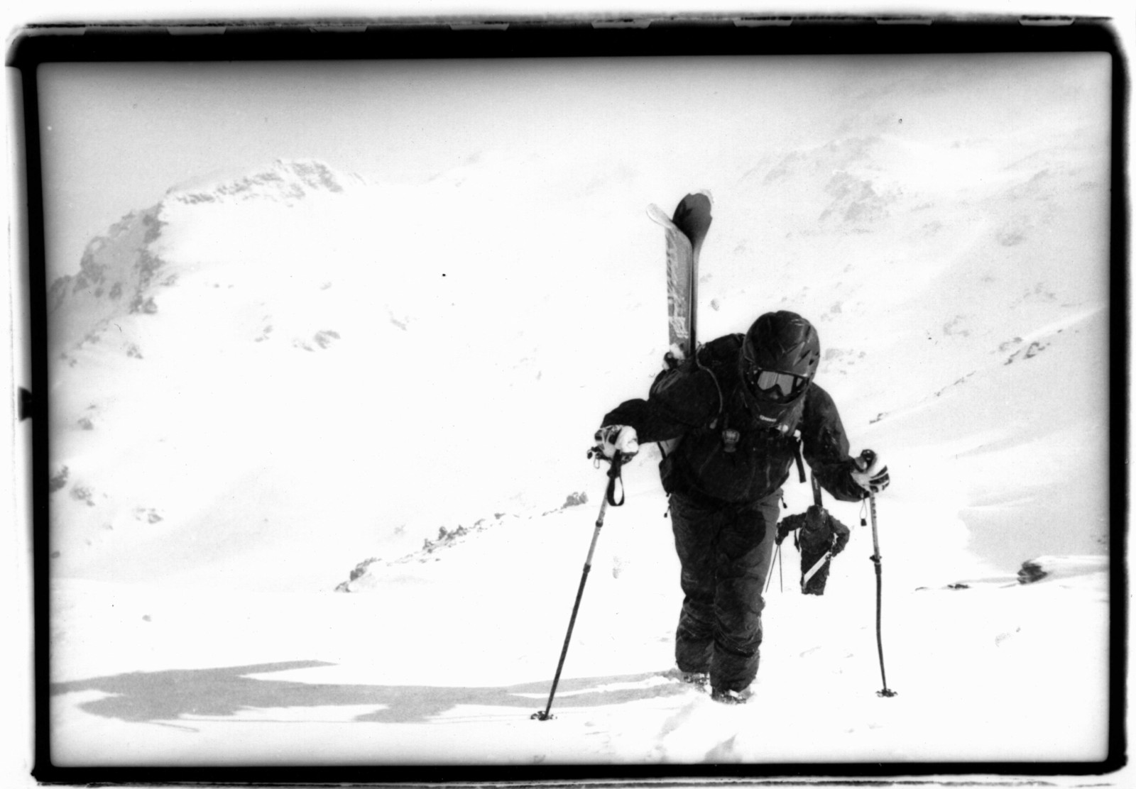 På väg mot utförsåkning bland bergen någon stans i närheten av Val Thorens.