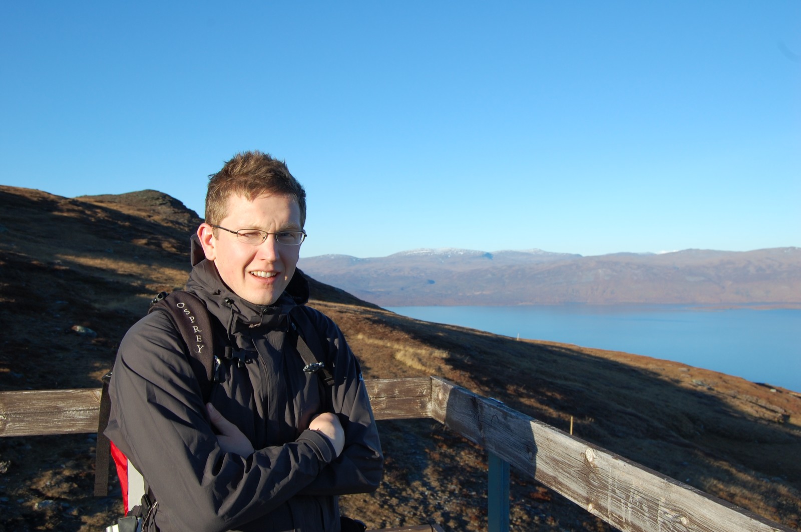 September tur till Abisko. Skådar utsikten från taket på Panorama café.