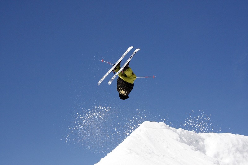 Viktor gör en skön "Lincoln loop" i hoppets corner. Här fångad precis då han hänger upp och ner och snön sprättandes omkring honom vilket gör det hela ganska effektfullt.