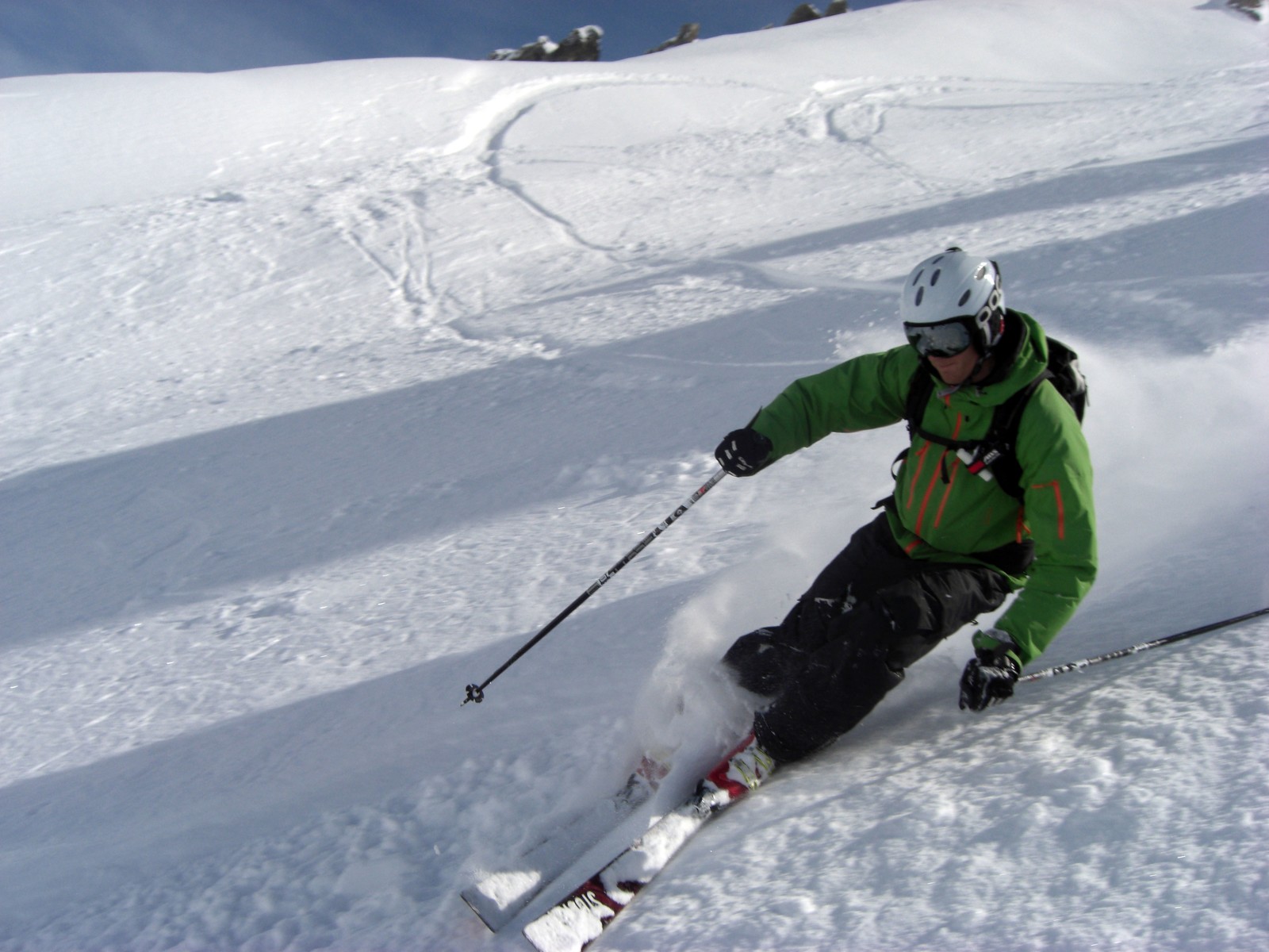 Sista puderdagen för säsongen, andra rännan till vänster om toppliften, ospårad och 30cm ny snö.