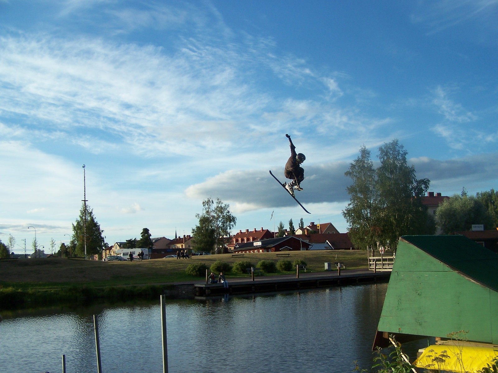 Snurrar runt och runt , samtidigt som jag vinkar åt söta flickor och suger tag i skidan med min andra hand ! Vattenhopp är skoj :)