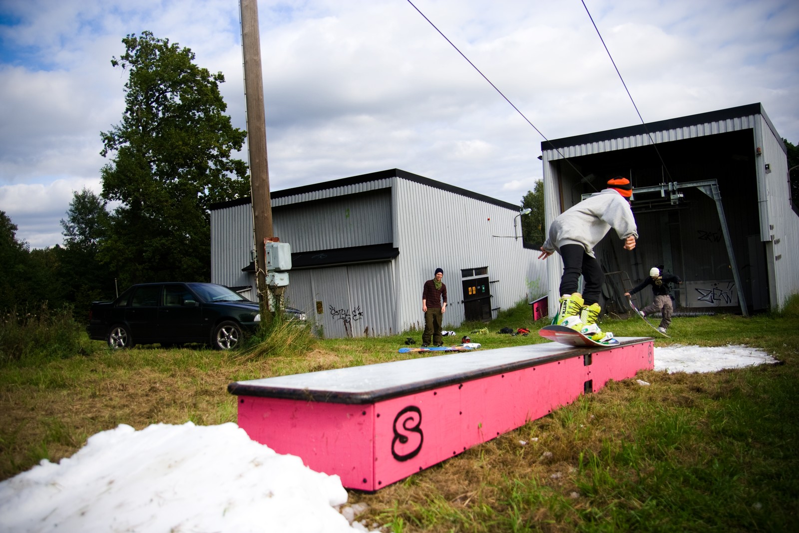 Jag pressar en solig söndag. Lägg märke till Frids tailblock!