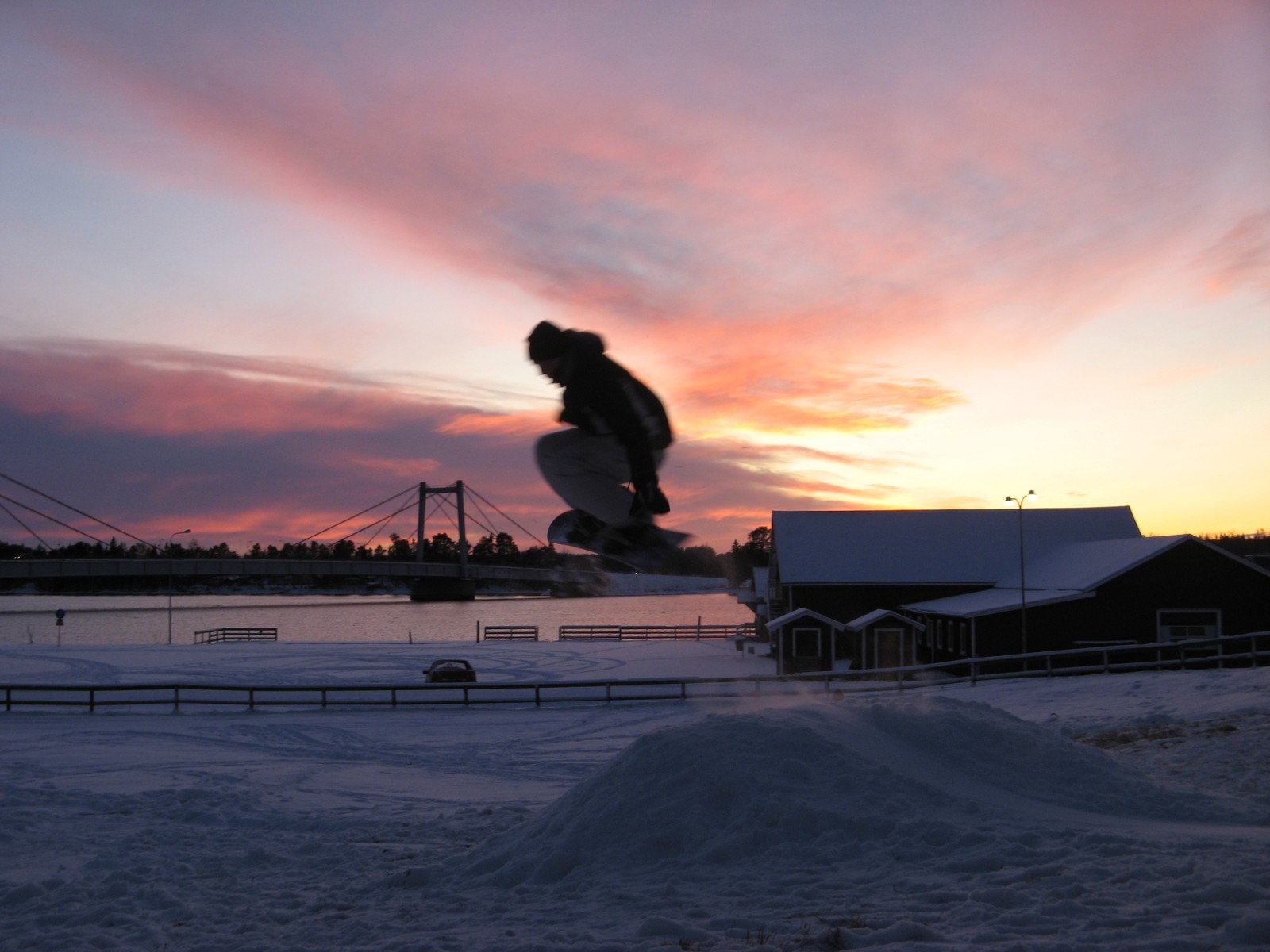 Axel tar en schysst grab ut i den orange/rosa himmlen!