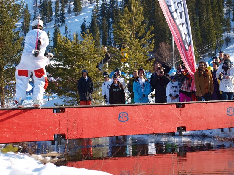 Ett av momenten på stadium railjam, här äver vattnet =D