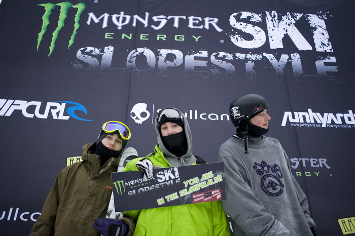 I Monster Energy Ski Slopestyle ställde 25 skidåkare upp och bjöd på flera grymma åk. De sex bästa som gick vidare till final var: Didrik Thoren, Gustav Edvall, Axel Östlund, Morten Grape, Erik Pousette samt Per Fernvik. I finalen hade domarna så svårt att ta fram en segrare så ett skiljeåk mellan Erik och Per var ett måste. Erik lyckade stå i landningen och fick därmed en semifinalplats i Ramundberget där 45 000 kronor står på spel. Gustav Edvall knep tredjeplatsen strax före Didrik Thoren.