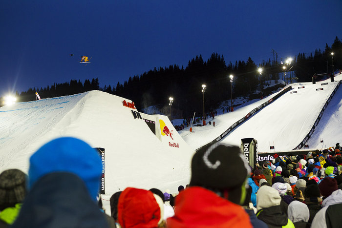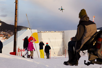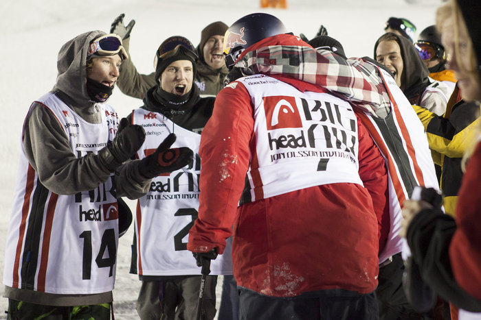 I finalen körde åkarna fyra hopp var varav de två bästa räknades. Närmast bakom PK flåsade hemmaåkaren Henrik Harlaut som förvaltade det wildcard han fick på kvalet igår på bästa sätt. Eller vad sägs om en stor nosebutter dubbelcork 1080 safety grab och en nosebutter dubbelcork 1260 tail grab. Henrik var i ledning efter två hopp men fick alltså sedan ge sig mot den stadige norrmannen.