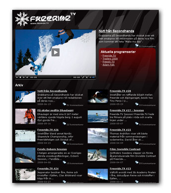 I samband med Freeride.TV:s förändring i ”tablån” släpps även en ny avdelning på Freeride där alla program i Freeride.TV samlas på ett överskådligt sätt. Det tidigare pop-upfönstret försvinner. Samtidigt styrs materialet över i bredbildsformatet 16:9 istället för det tidigare 4:3. Nu kan du även kommentera en film medans du tittar utan att sidan laddas om. Besök nya Freeride.TV.