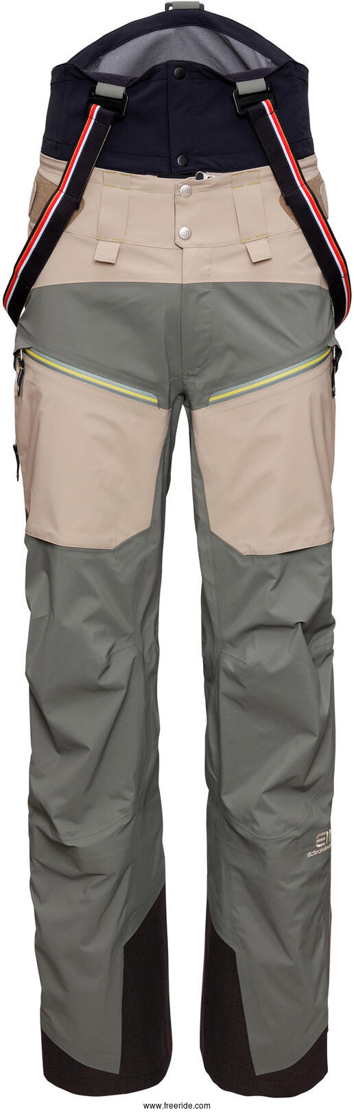 Avancerade byxor designade för aktiv skidåkning i miljöer där ingenting ska distrahera dig. Fantastisk passform med stort rörelseomfång och Gore-tex Pro skalet ger precis rätt balans mellan andningsförmåga och robusthet vid fysiska utmaningar. Förstärkta vid benslut så att de tål slitage från pjäxor och stegjärn. Hängslen håller snö ute på djupa dagar, men kan lätt tas av om du föredrar en vanlig midja. Givetvis är fickorna lätta att använda när man bär sele, och det finns även en invändig ficka för din trensciever.