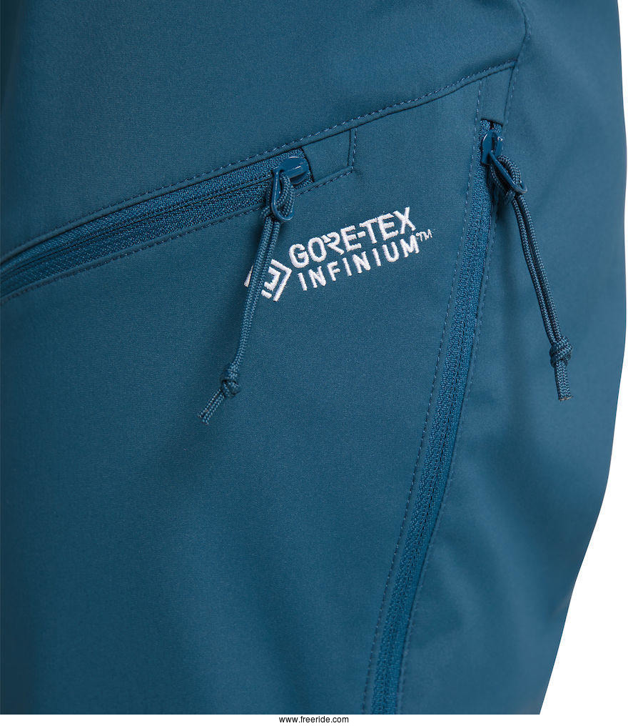 Perfekt för torrare dagar på berget, skidturbyxor som kombinerar högpresterande tyg med en freeride-look och känsla. Tillverkade av GORE-TEX Infinium, ett extremt lätt och slitstarkt tyg som skyddar dig från vind och väta samtidigt som det har bra värmehantering och andningsförmåga i toppklass. Har också alla nödvändiga funktioner så som elastiska snölås, förböjda ben för rörelsefrihet och två fickor med blixtlås som håller det viktigaste säkert i backen.