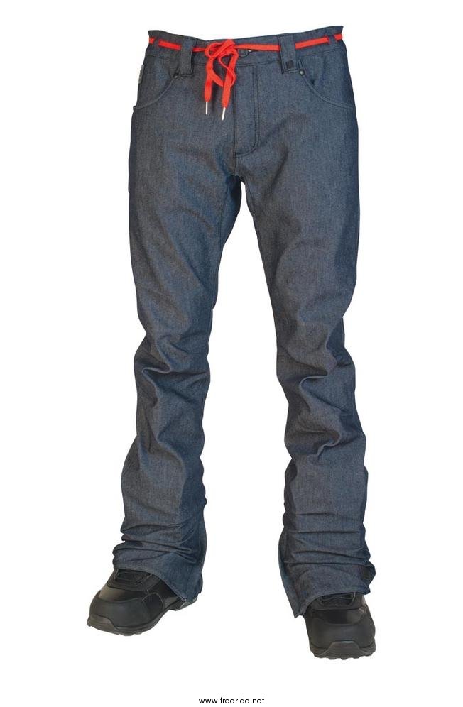 Exklusiv Super slimmad vattentålig fem fickors denim byxa. Kritiskt tejpade sömmar, intagen extra vid knäna för bättre passform. Slits för att kunna få byxorna över bootsen. Skosnöre i midjan. Fungerar som riktiga jeans, får en snyggare slitning desto mer du använder dem.