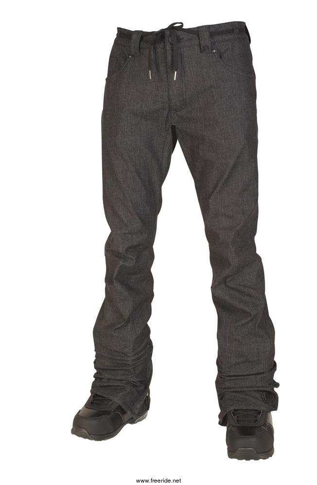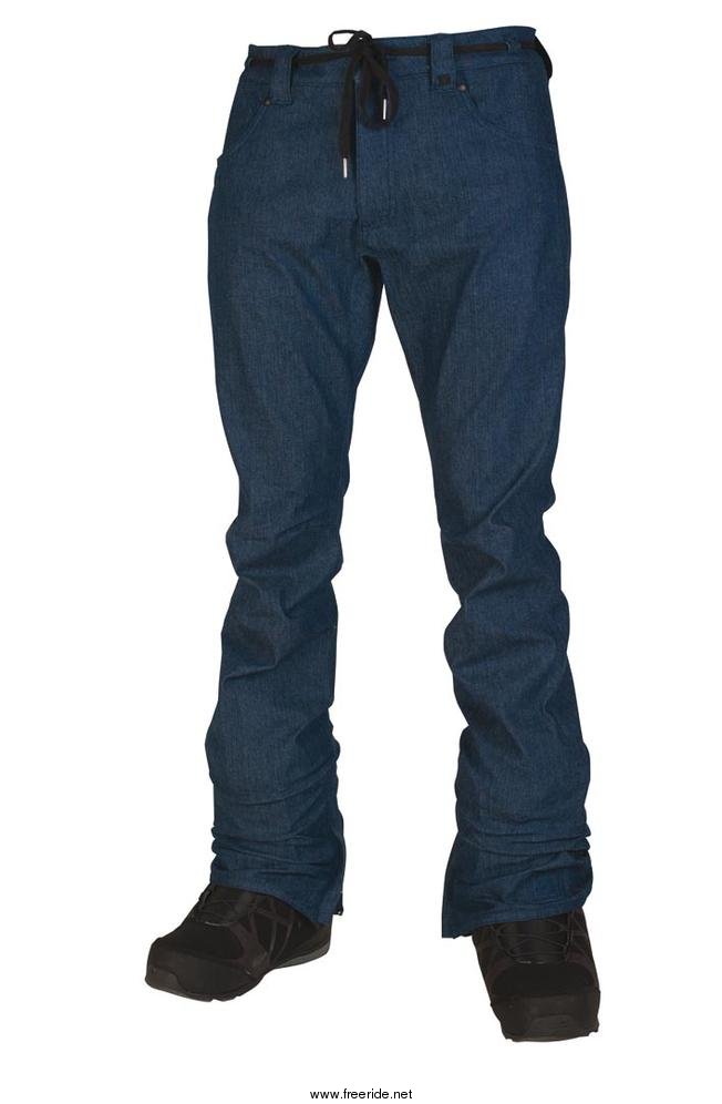 Super slimmad vattentålig fem fickors denim byxa. Kritiskt tejpade sömmar, intagen extra vid knäna för bättre passform. Slits för att kunna få byxorna över bootsen. Skosnöre i midjan. Fungerar som riktiga jeans, får en snyggare slitning desto mer du använder dem.