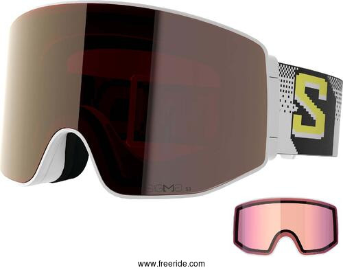 | Information | Hos Salomons Sentry Prime kombineras en snygg streetstil med avancerad teknik i ett par skidglasögon som du aldrig kommer att vilja vara utan. Två magnetiska SIGMA™-glas förstärker färgkontrasterna och ger utmärkt sikt oavsett väderlek. Det är superlätt att ta av ett glas, knäppa på ett annat, säkra det med spärren och röja så hårt du vill utför berget. |