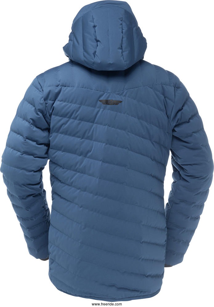 En militærinspirert dunjakke til herre. Strikket ytterstoff sammen med en membran gjør jakken både myk og slitesterk. Kan brukes som ytterjakke eller som et mellomlag under skalljakken. Ytterligere detaljer inkluderer håndvarmerlommer, brystlomme og en hette som beskytter mot vær og vind. I tillegg er den komprimerbar og kan pakkes i egen lomme. En lettvekter som alltid bør være med i sekken.