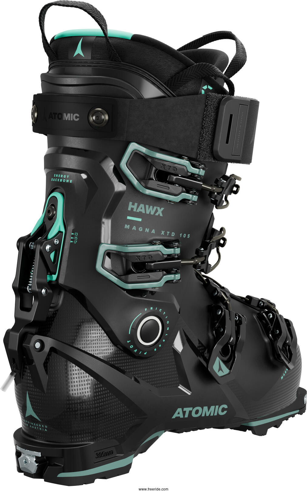 Utförsprestanda kombineras med gångbarhet i Atomic Hawx Magna XTD 105 W GW, ett utmärkt val för kvinnliga friåkare med bredare fötter som letar efter en medium flex crossover-känga. Med en bred läst på 102 mm och en flex på 105, är det det styvare alternativet i Atomic-sortimentet för kvinnor som behöver en touringkänga med hög volym. Prolite-konstruktionen säkerställer stabilitet genom att börja med en smal profil och lägga till förstärkning i nyckelzoner. En Mimic Gold liner är förformad runt ankeln och hälen och kan anpassas med värmeformbar Mimic-teknik för optimal passform. Memory Fit formar skal och manschett genom värmepassning i butik. Gör plats i vaden genom att ta ut manschettspoilern (AFS) (Adaptive Fit System). Free/Lock 4.5 är Atomics mest robusta skidvandringsmekanism med justerbar framåtlutning. För naturlig rörelse under turné har manschetten 54° rörelseomfång. GripWalk-sulor är kompatibla med MN-, MNC- och stiftbindningar. För äventyr utanför portarna kan dessa stövlar ta dig dit.